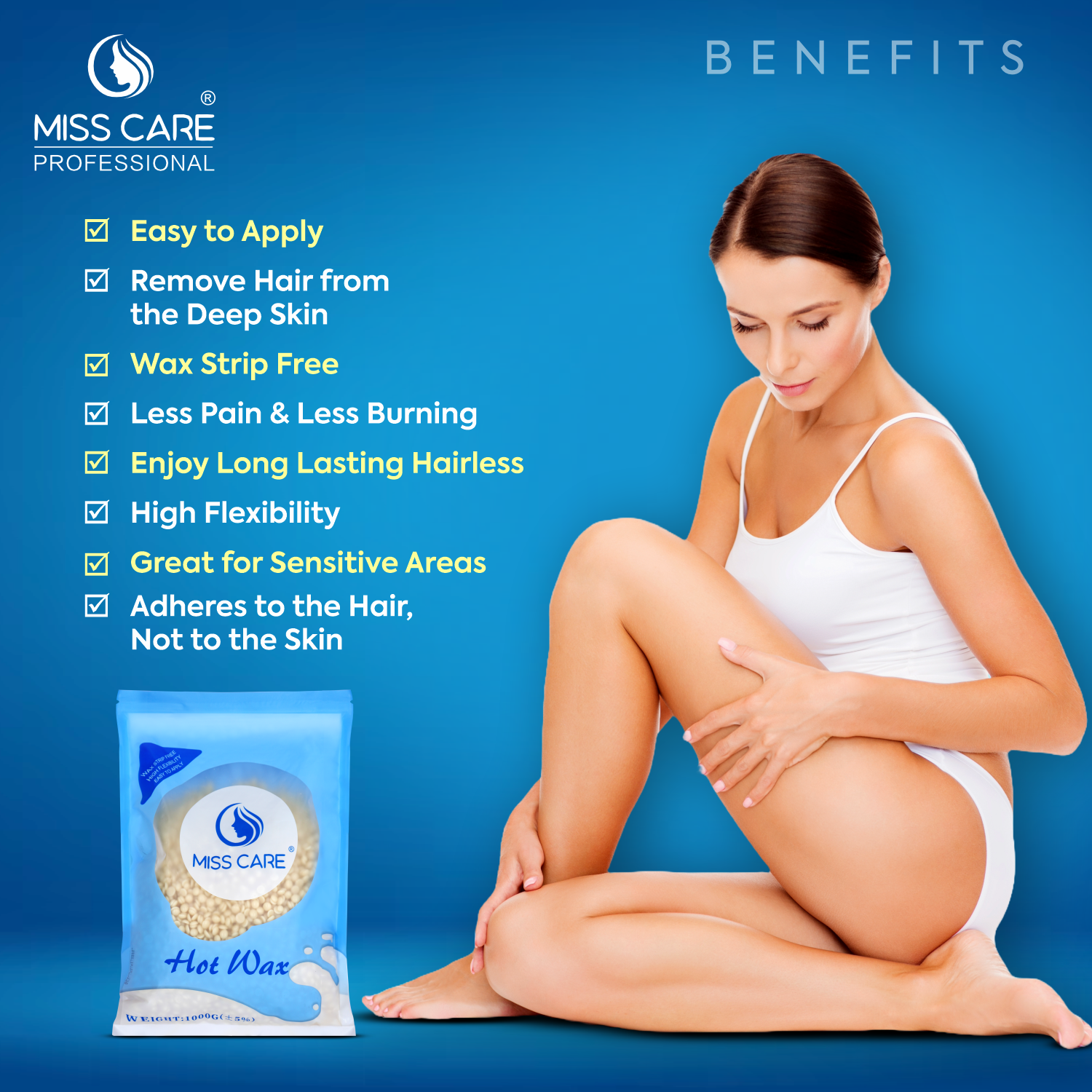 Skin-Friendly Ingredients – Infused with skin-soothing components, miss care hot wax provides a gentle touch, making it ideal for regular use in hair removal products collections. Designed to reduce irritation during wax hair removal routines.