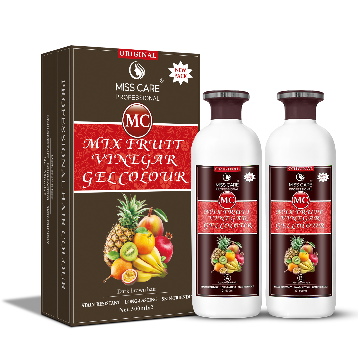 Experience professional-grade hair coloring with the Miss Care Original MC Mix Fruit Vinegar Gel Colour, a revolutionary ammonia-free hair dye infused with the power of fruit vinegar for naturally vibrant, glossy dark brown results. Specially formulated for both men and women, this 1000 ml gel-based color delivers rich coverage, smooth application, and long-lasting color that nourishes as it transforms.