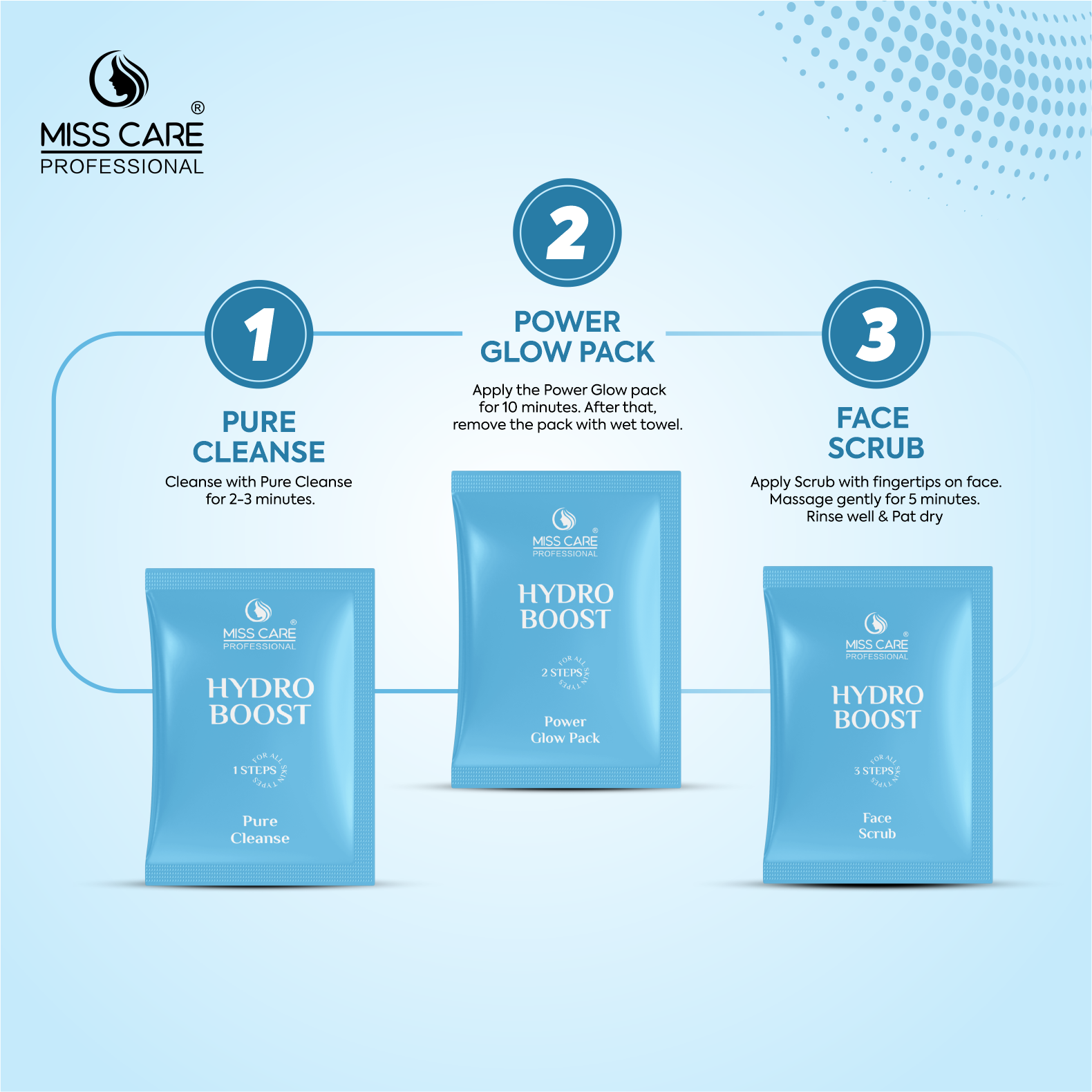 The Miss Care Professional Hydro Boost Facial Kit is specially formulated with Snail Mucin Extract to deliver intense hydration, skin repair, and long-lasting moisture retention. Designed as a complete 9-step professional facial system, it helps restore dry, tired, and dehydrated skin to a plump, smooth, and radiant finish.