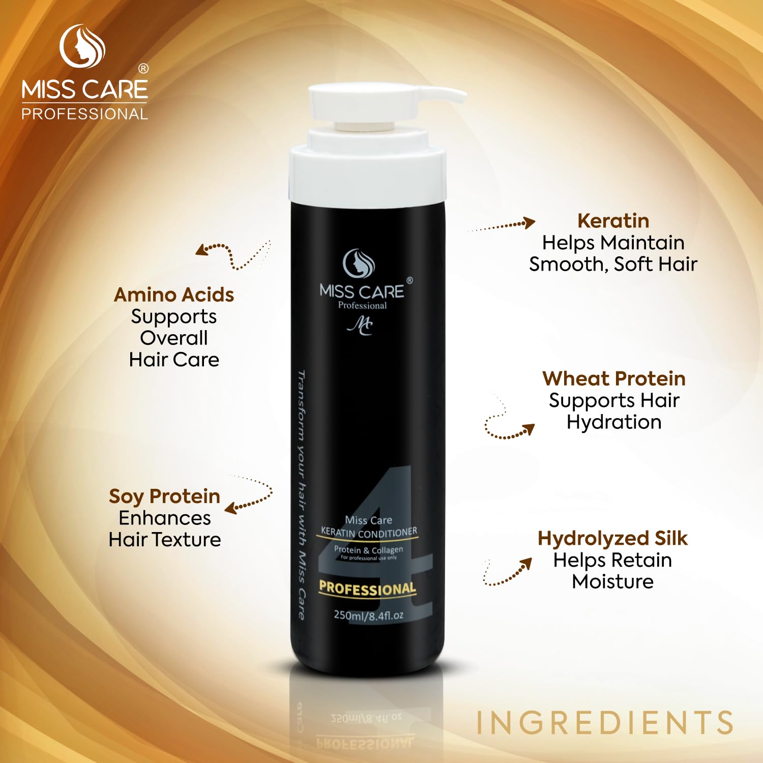 - 🏆 Why Choose Miss Care – Miss Care brings together thoughtful formulations and a sleek design aimed at professional use. The focus is on performance, ease of use, and complementing the expertise of salon stylists with a refined keratin conditioner approach.