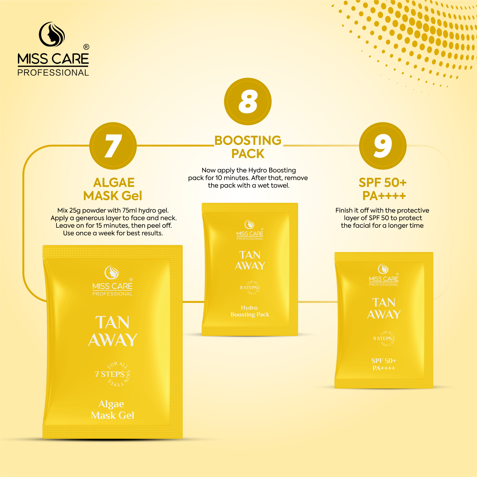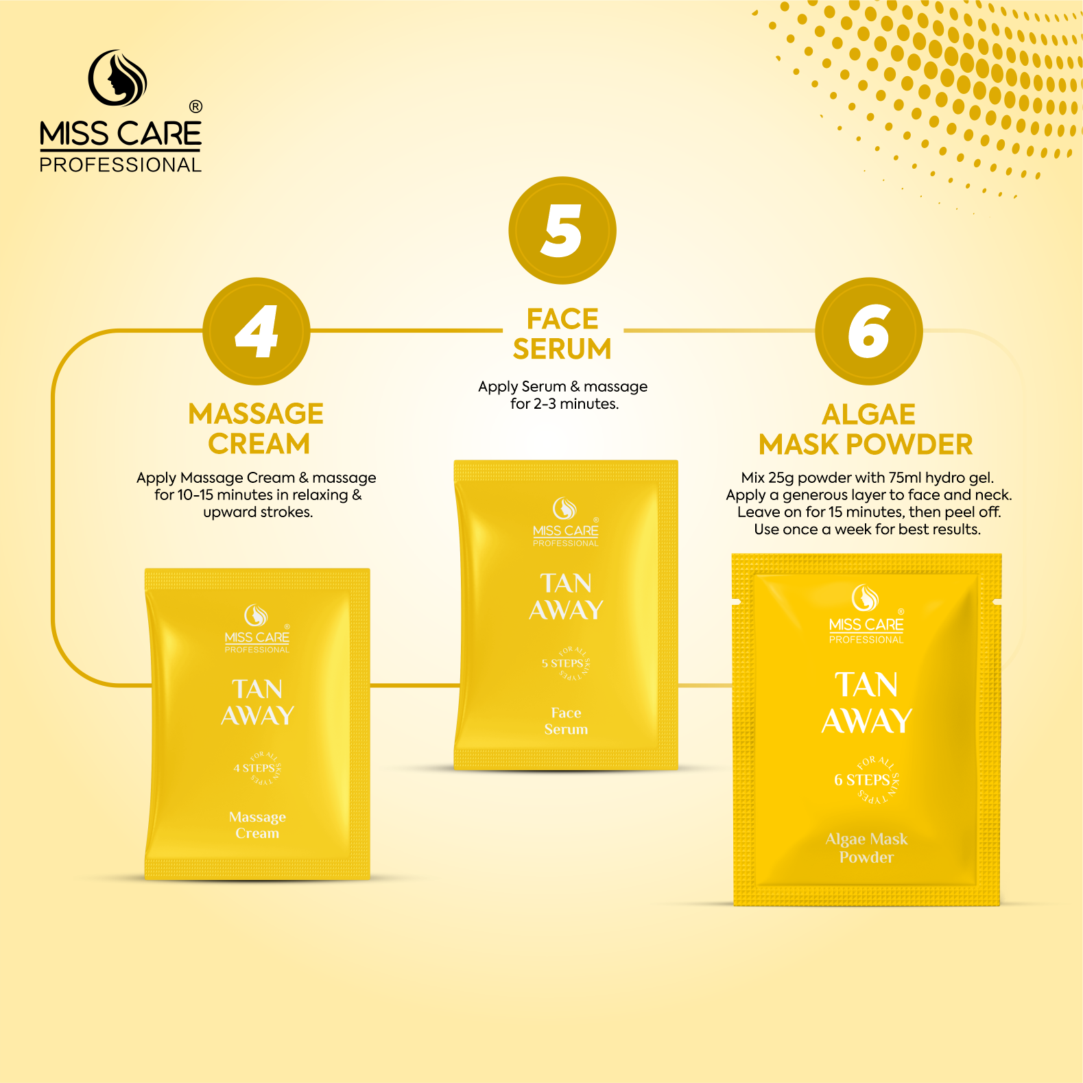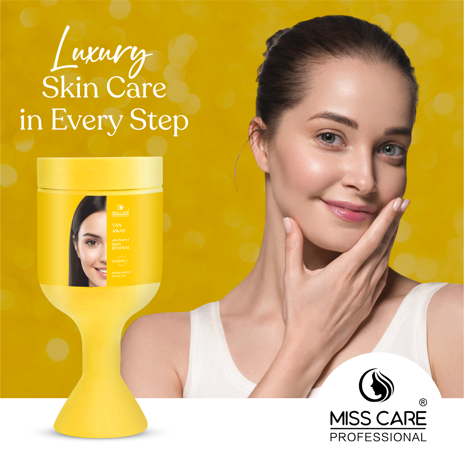 The Miss Care Professional Tan Away Facial Kit is enriched with Vitamin C, known for its powerful brightening and skin-renewing properties. This advanced 9-step professional facial system helps reduce tanning, restore natural skin tone, and promote a refreshed, radiant complexion.