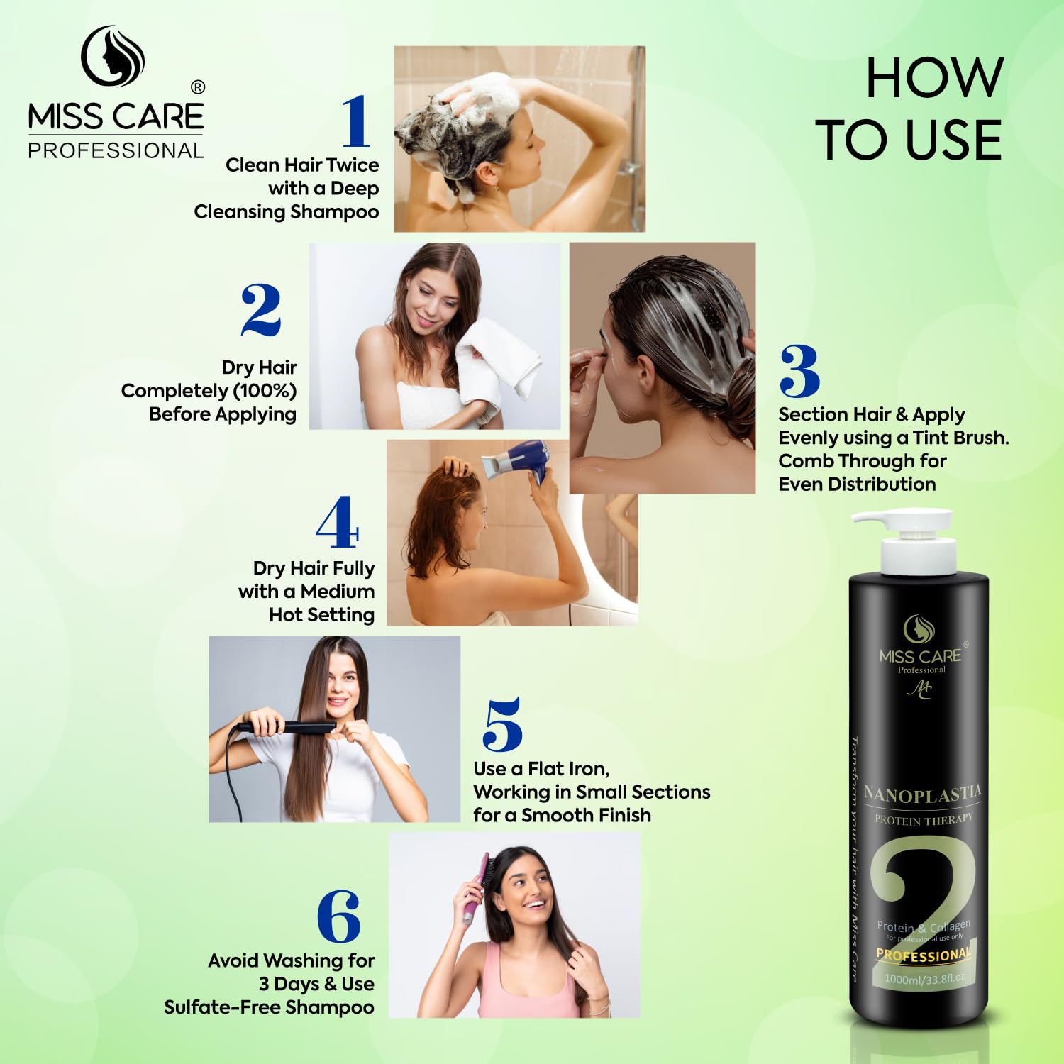 Upgrade your routine with Miss Care Professional Nanoplastia Protein Therapy, the ultimate keratin treatment pack for smooth, silky, and salon-straight hair.