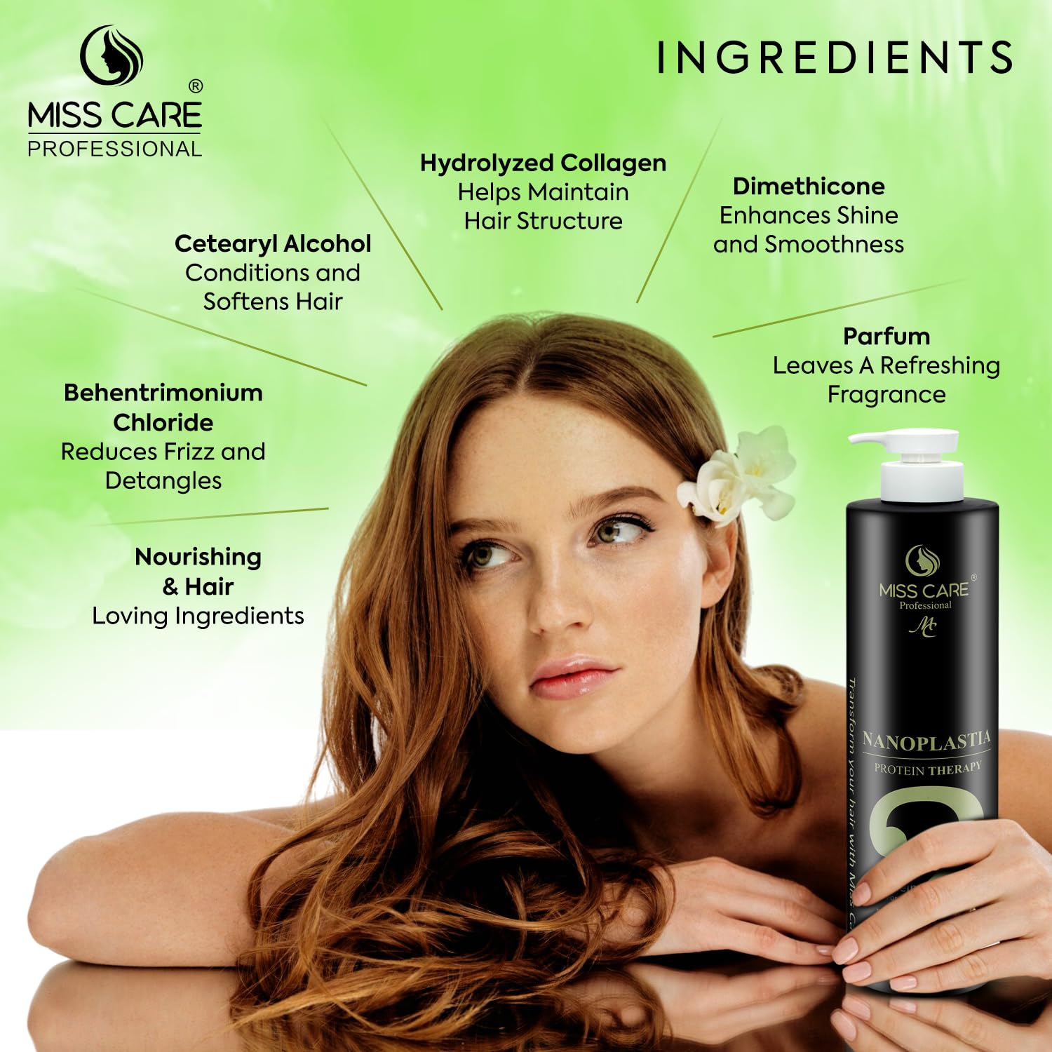 Miss Care Professional Nanoplastia Protein Therapy for Hair 1000ml, Infused with Protein and Collagen, for Smoother and Shinier Hair